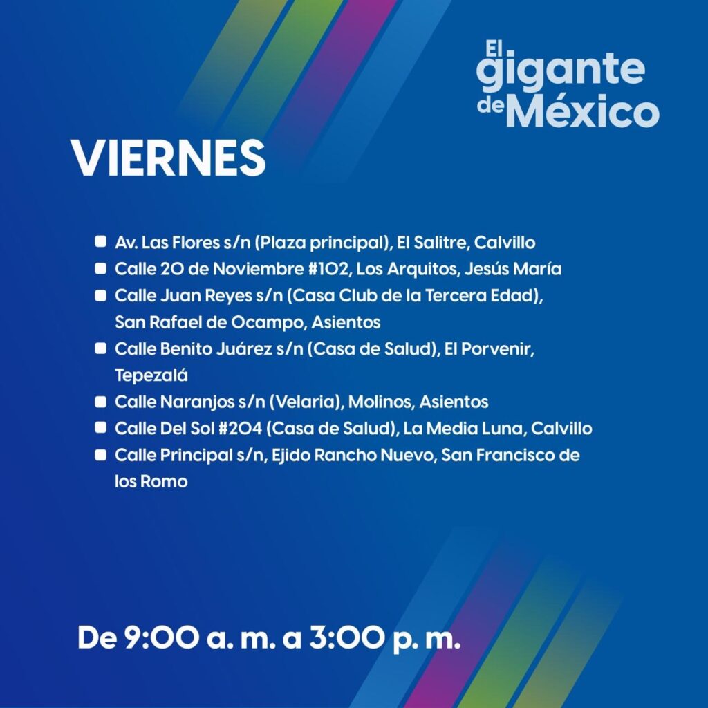 APOYO SOCIALCiudad AGSMunicipiosSALUD Acude a las Caravanas de la Salud del 1 al 5 de septiembre y accede a servicios médicos gratuitos. by admin 31 de agosto de 2025 written by admin 31 de agosto de 2025 0 comments Share 0FacebookTwitterPinterestTumblrVKWhatsappThreadsBlueskyEmail 49 el gigante de MéxicoGobierno de Aguascalientes Share 0 FacebookTwitterPinterestTumblrVKWhatsappThreadsBlueskyEmail admin previous post MÁS DE 300 TONELADAS DE BASURA HAN SIDO RETIRADAS DEL RÍO SAN PEDRO EN 2025 next post Brigada de Empleo en la colonia Constitución este lunes. You may also like Una noche inolvidable en el Foro del Lago, llena de ritmos vibrantes que... 23 de abril de 2026 CON EL CORAZÓN EN EL AULA, LAS EDUCADORAS SIEMBRAN SUEÑOS PARA TODA LA... 23 de abril de 2026 CON COLOR Y VISIÓN, TERE JIMÉNEZ IMPULSA NUEVA IMAGEN URBANA EN AGUASCALIENTES 23 de abril de 2026 INAUGURA TERE JIMÉNEZ LA EXPO CAMPO Y EL PABELLÓN HECHO EN AGUASCALIENTES EN... 23 de abril de 2026 Martes 21 de abril 23 de abril de 2026 Te compartimos las actividades de la feria nacional de San Marcos para este... 23 de abril de 2026