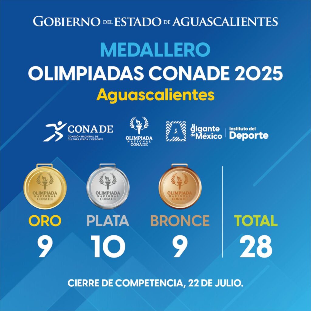 HomeDeportes¡Aguascalientes sigue brillando!Nuestra delegación no se detiene y continúa sumando medallas en la Olimpiada Nacional.💪 Ya estamos en el Top 10 del medallero, demostrando que el talento y la disciplina de nuestros atletas no tienen límites.