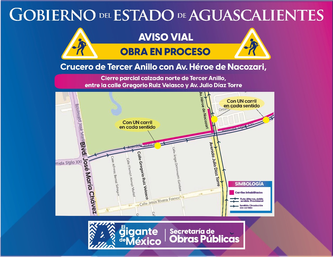 HomeCiudad AGSDebido a las obras que se realizan en Tercer Anillo Sur, a partir de este martes y hasta nuevo aviso, habrá un cierre parcial en el cruce con la Av. Héroe de Nacozari, en dirección de norte a sur.