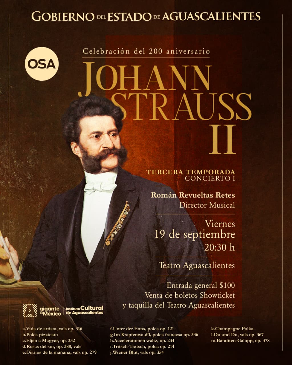 Como parte de la celebración del 200 aniversario de Johann Strauss II, la OSA presentará un programa especial en homenaje a su legado musical, con una selección de sus obras más emblemáticas que el público podrá disfrutar.