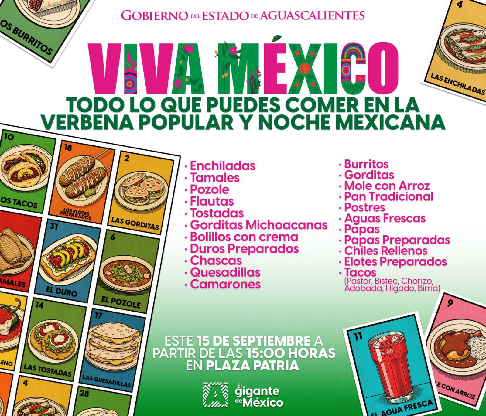 🇲🇽 3:00 pm – Verbena popular en Plaza Patria con antojitos, danza folclórica, mariachi y muchas sorpresas más.