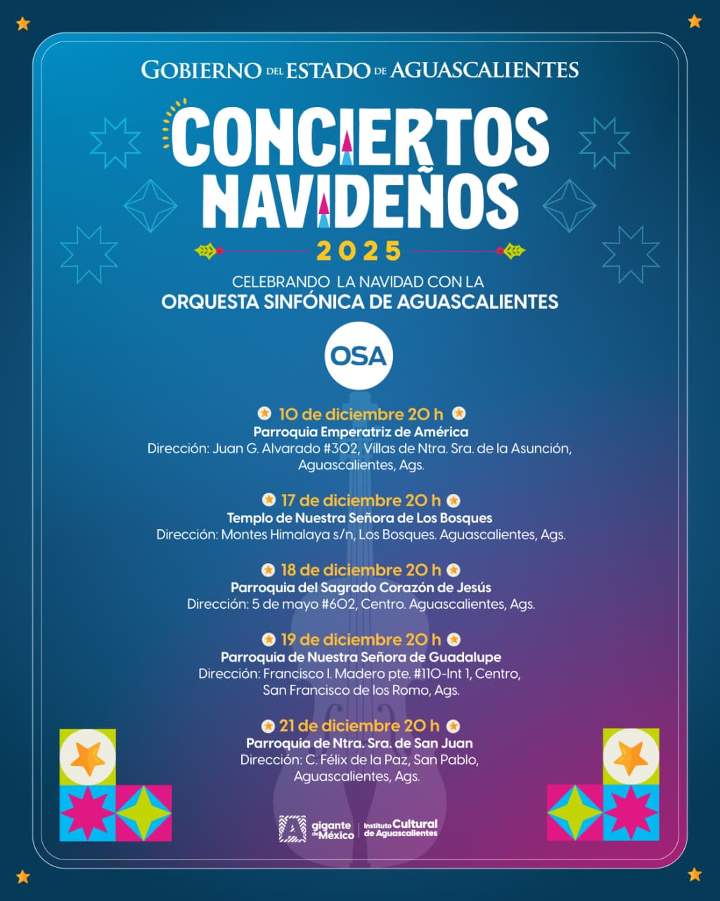 Te invitamos a disfrutar “Celebrando la Navidad”, un programa especial para compartir en familia y recibir la temporada más luminosa del año. Acompáñanos a vivir estas presentaciones llenas de encanto, villancicos y el calor de la música en vivo. ¡Revisa la programación y asiste con tu familia! #ViveICA #OSA