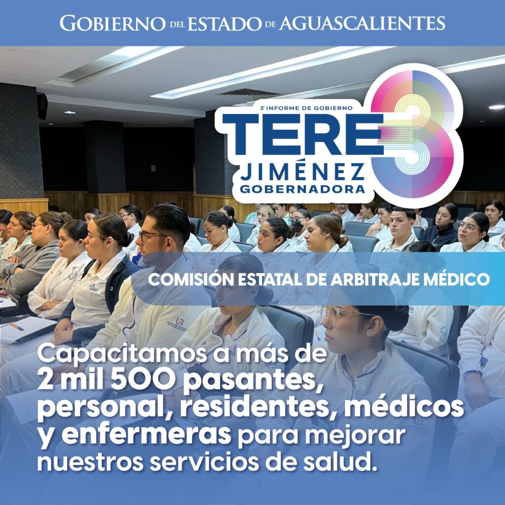 Home3er INFORME TERE JIMENEZMás de 2 mil 500 trabajadores del sector salud fueron capacitados a través de la Comisión Estatal de Arbitraje Médico con el objetivo de mejorar la calidad de los servicios.