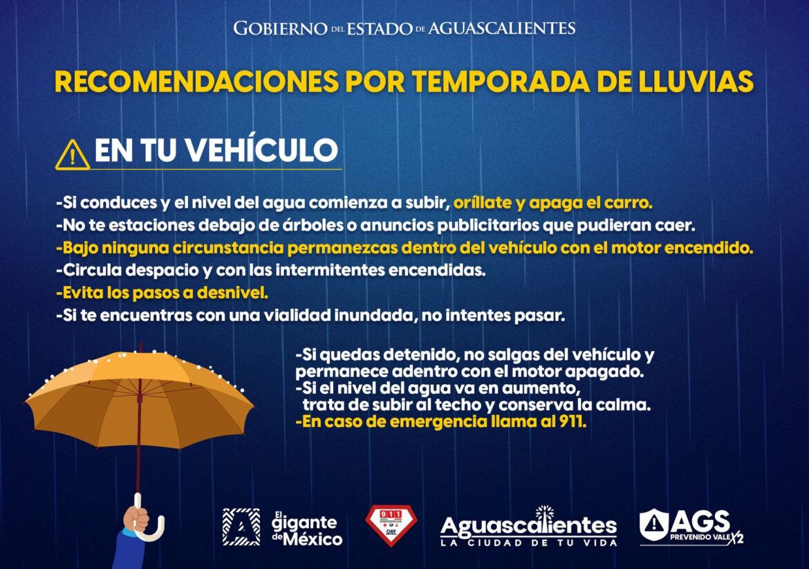 Ciudad AGSMEDIO AMBIENTEPROTECCION CIVILSEGURIDAD TE COMPARTO LAS SIGUIENTES RECOMENDACIONES PARA ESTA TEMPORADA DE LLUVIAS 🌧️ by admin 25 de agosto de 2025 written by admin 25 de agosto de 2025 0 comments Share 0FacebookTwitterPinterestTumblrVKWhatsappThreadsBlueskyEmail 69 el gigante de MéxicoGobierno de Aguascalientes Share 0 FacebookTwitterPinterestTumblrVKWhatsappThreadsBlueskyEmail admin previous post La etapa uno de Activate Recio y Enserio en la Copa Aguascalientes Estatal 2025 se llevó a cabo en la Plaza Fundadores, marcando el inicio de esta emocionante competencia. ¡Felicidades a todos los participantes! 🥳💃🏻 next post TERE JIMÉNEZ IMPULSA ESPACIOS GRATUITOS DE RECREACIÓN Y CUIDADO PARA ADULTOS MAYORES You may also like Una noche inolvidable en el Foro del Lago, llena de ritmos vibrantes que... 23 de abril de 2026 CON EL CORAZÓN EN EL AULA, LAS EDUCADORAS SIEMBRAN SUEÑOS PARA TODA LA... 23 de abril de 2026 CON COLOR Y VISIÓN, TERE JIMÉNEZ IMPULSA NUEVA IMAGEN URBANA EN AGUASCALIENTES 23 de abril de 2026 INAUGURA TERE JIMÉNEZ LA EXPO CAMPO Y EL PABELLÓN HECHO EN AGUASCALIENTES EN... 23 de abril de 2026 Martes 21 de abril 23 de abril de 2026 Te compartimos las actividades de la feria nacional de San Marcos para este... 23 de abril de 2026