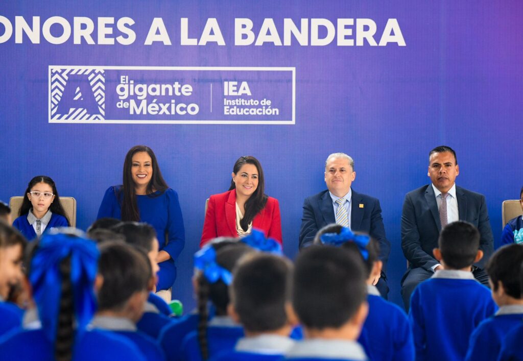 La gobernadora de Aguascalientes, Tere Jiménez, encabezó la ceremonia de Honores a la Bandera y la entrega de obras de infraestructura educativa en la Escuela Primaria “Teodoro Olivares”, ubicada en el municipio de Pabellón de Arteaga.