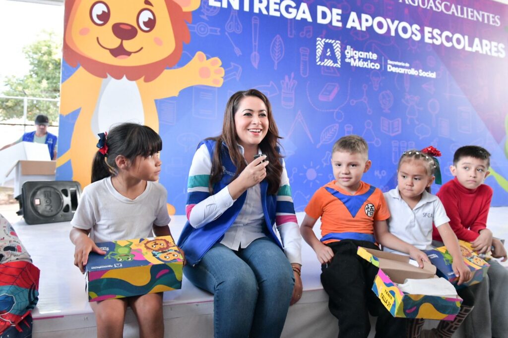 En apoyo a la economía familiar, la gobernadora de Aguascalientes, Tere Jiménez, sigue recorriendo colonias y comunidades para entregar personalmente útiles escolares, mochilas, zapatos y tenis a miles de estudiantes de todo el estado.