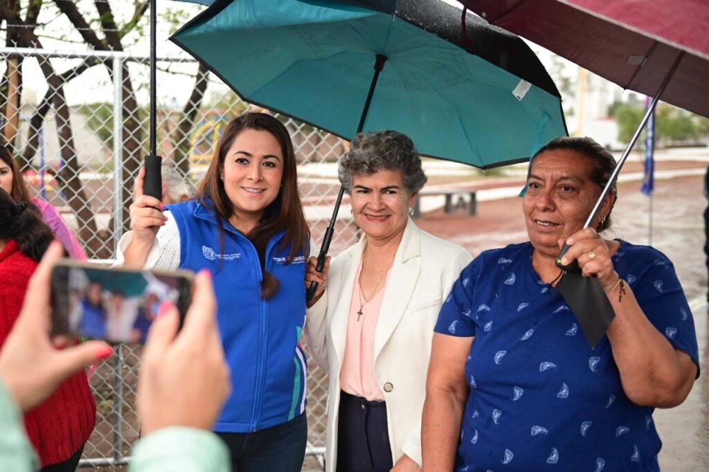 “Les pusimos sus canchas deportivas y juegos para que tengan espacios dignos y de calidad, como se merecen. Simplemente aquí en la capital hemos rehabilitado y entregado 16 parques”, expresó la gobernadora durante el evento en el Ejido Peñuelas.