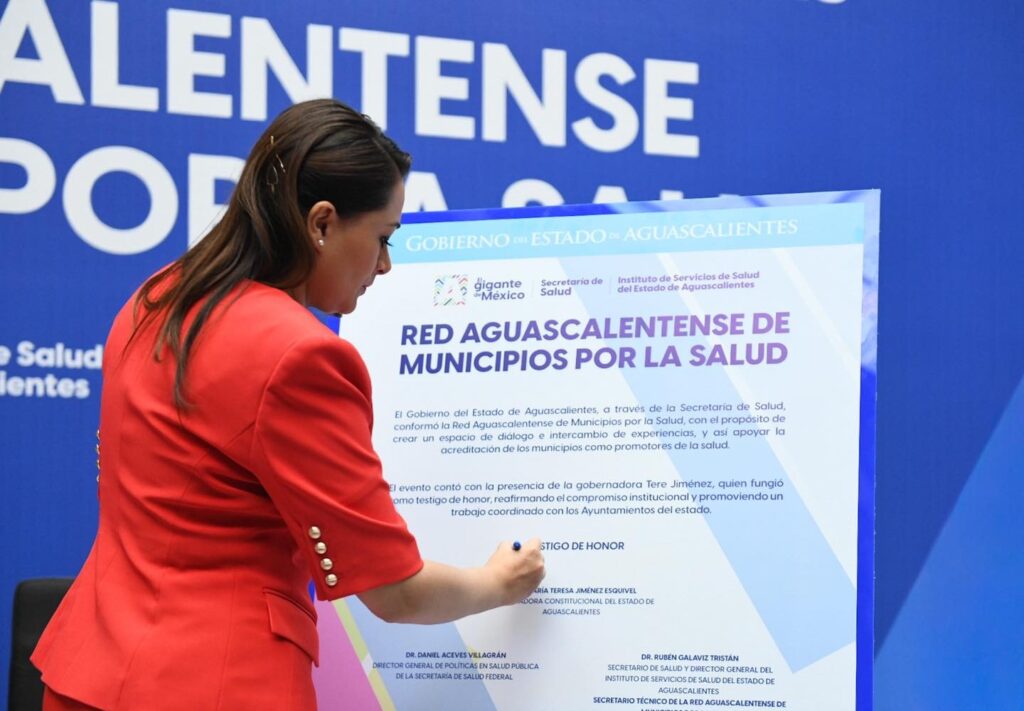 La gobernadora de Aguascalientes, Tere Jiménez, tomó protesta a los integrantes de la Red Aguascalentense de Municipios por la Salud, desde donde se trabajará para fortalecer las acciones de atención, prevención y promoción de la salud en cada una de las comunidades que integran los 11 municipios del estado.