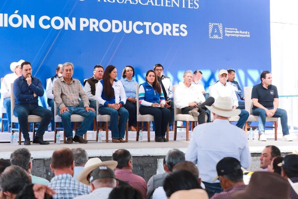 Durante la reunión que se realizó en la Explanada de los Símbolos Patrios en Pabellón de Arteaga, también estuvieron presentes el senador de Aguascalientes, Juan Antonio Martín del Campo; Enrique Vargas del Villar, senador del Estado de México; Paulo Gonzalo Martínez López, diputado federal; Heriberto Gallegos Serna, Amisadai Manuel Castorena Romo y Adán Valdivia, diputados locales; Lucero Espinoza Vázquez, presidenta municipal de Pabellón de Arteaga; Laura Araceli González Reyes, presidenta municipal de San José de Gracia; José Manuel González Mota, presidente municipal de Asientos; César Medina, presidente municipal de Jesús María; Noel Mata Atilano, director general del Instituto del Agua del Estado; Francisco Ruvalcaba Marín, presidente de la Asociación de Usuarios de la Junta de Aguas del Distrito de Riego 001 Pabellón de Arteaga; así como productoras y productores del campo.